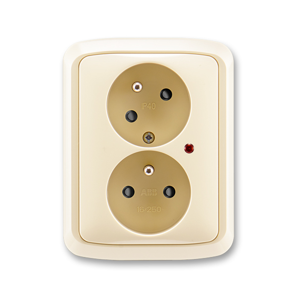 Zásuvka dvojnásobná s ochrannými kolíkmi, s clonkami, s natočenou dutinou, s ochranou pred prepätím