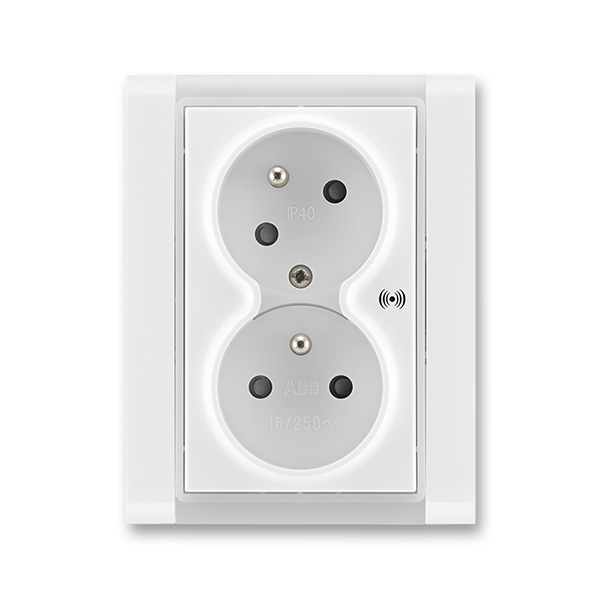 Zásuvka dvojnásobná s ochrannými kolíkmi, s clonkami, s natočenou dutinou, s ochranou pred prepätím