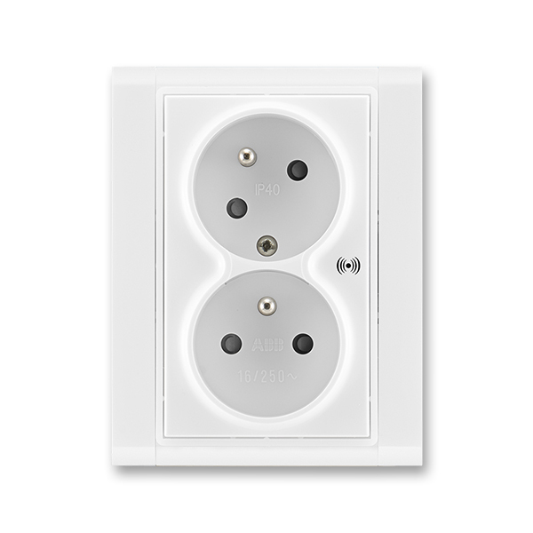 Zásuvka dvojnásobná s ochrannými kolíkmi, s clonkami, s natočenou dutinou, s ochranou pred prepätím