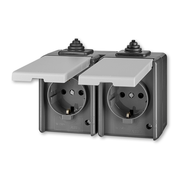 Zásuvka dvojnásobná IP 44, s ochrannými kontaktmi (podľa DIN), s viečkami