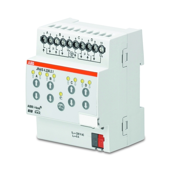 V systémovej inštalácii ABB i-bus® KNX slúži na ovládanie smeru otáčania pohonov žalúzií a roliet, k natáčanie lamiel žalúzií a tiež na nastavenie predvolenej polohy v spolupráci s automatickým systémom riadenia žalúzií pre využitie slnečnej energie pre vykurovanie a osvetľovanie.