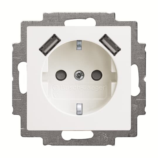 Zásuvka SCHUKO jednonásobná s ochrannými kontaktmi, s clonkami, s nabíjaním 2x USB-A