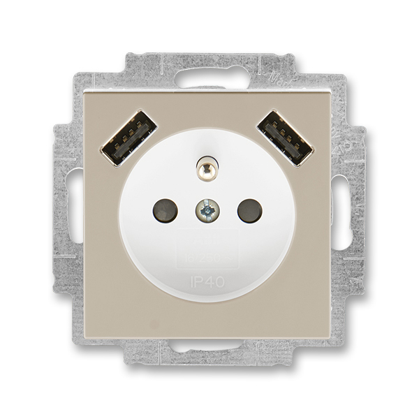 Zásuvka jednonásobná s ochranným kolíkom, s clonkami, s nabíjaním 2x USB-A