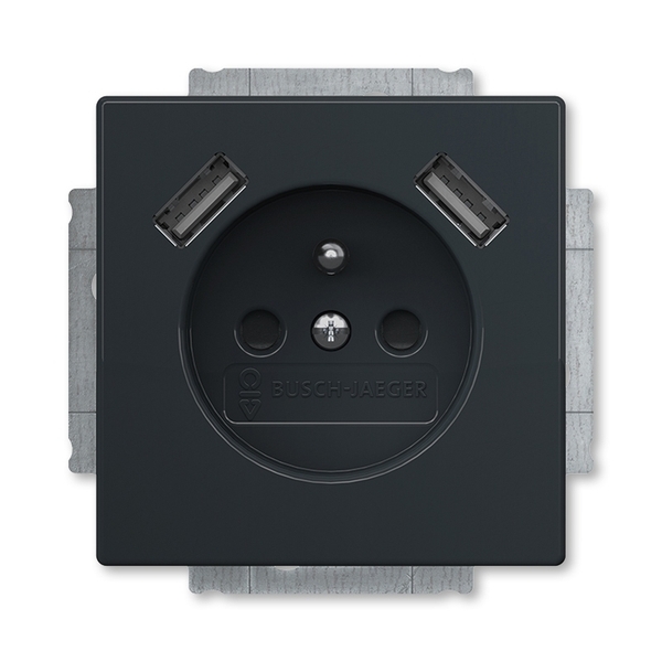 Zásuvka jednonásobná s ochranným kolíkom, s clonkami, s nabíjaním 2x USB-A