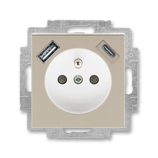 Zásuvka jednonásobná s ochranným kolíkom, s clonkami, s USB nabíjaním (USB-A + USB-C)