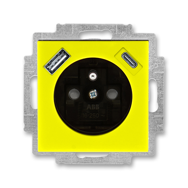 Zásuvka jednonásobná s ochranným kolíkom, s clonkami, s USB nabíjaním (USB-A + USB-C)