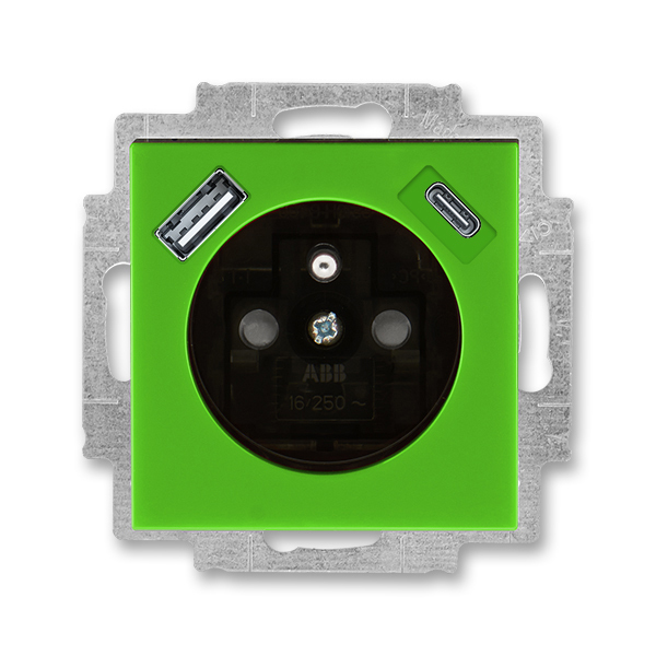 Zásuvka jednonásobná s ochranným kolíkom, s clonkami, s USB nabíjaním (USB-A + USB-C)