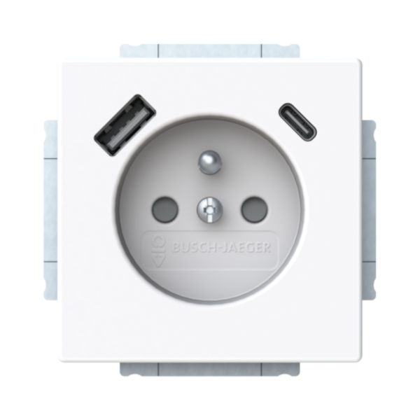 Zásuvka jednonásobná s ochranným kolíkom, s clonkami, s USB nabíjaním (USB-A + USB-C)