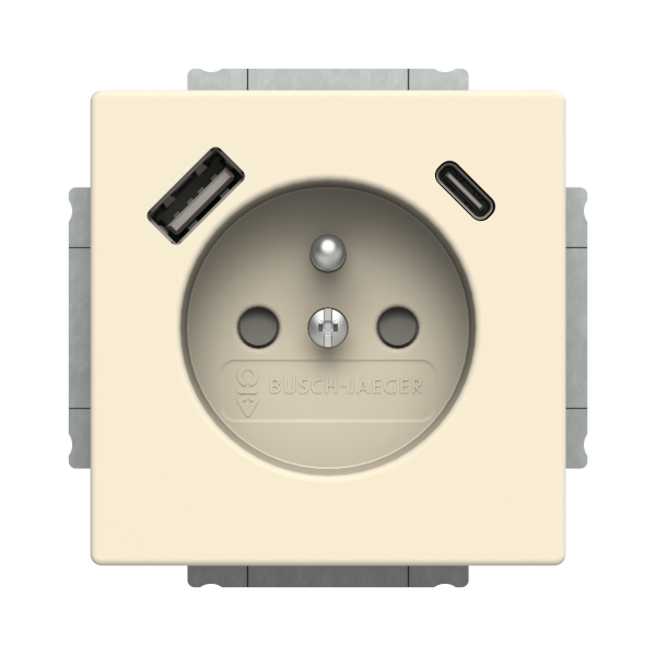 Zásuvka jednonásobná s ochranným kolíkom, s clonkami, s USB nabíjaním (USB-A + USB-C)