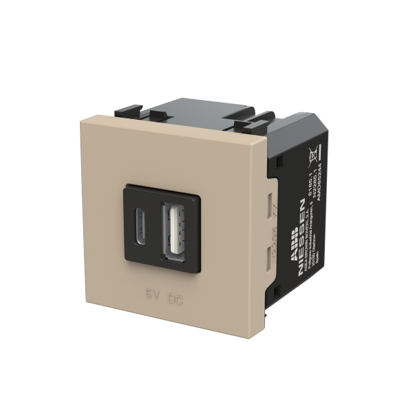 USB nabíjačka typ A+C 18 W, 2-násobná – 2M, šampanská